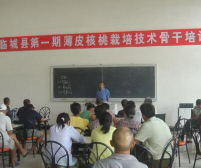 從1999年開始,在最難開發的太行山干旱丘陵崗地,李保國和課題組成員選取臨城縣的鳳凰嶺,確立了“聚土集水”的開發策略,選種薄皮核桃。